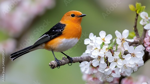 bird, nature, wildlife, spring, blossom, flower, springtime, closeup, floral, flower, nature scene, spring flower, small bird, tree branch, portrait, detailed, photographic