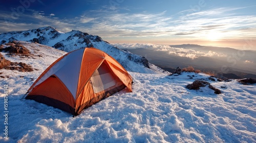 high, quiet, landscape, snow, scenic, camping, calm, snowy, travel, view, sunshine, sky, beautiful, nature, adventure, tent, exterior, fresh, cold, mountainous, mountain, sunrise, hiking, relaxing, cloud, winter, peak, freedom, peaceful
