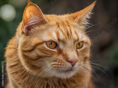 orange cat with blur background, orange cat is sitting and looking