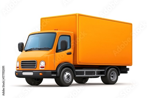 truck, delivery, orange, transport, vehicle, isolated, white, logistic, commercial, cargo, box, freight, service, distribution, shipping, automobile, transportation, business, move, drive, road, van, good, industry, package, express, moving, courier, supply, chain, trade, market, economy, import, export