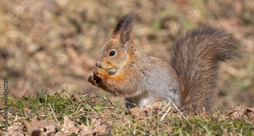 squirrel, maple, tree, tree branch, blossom, wildlife, outdoors, fur, rodent, animal, tail, mammal, fluffy, furry