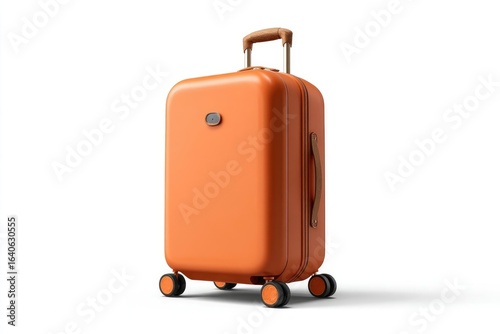 baggage, suitcase, travel, orange, hard, shell, carry-on, rolling, traveler, carry, wheel, handle, leather, brown, transport, portable, bag, case, journey, trip, holiday, vacation, equipment, packing, accessory, modern, design, fashion, light, shadow, three-dimensional, render, product, isolated, white, background, studio, holiday maker, flight, aerodrome, lightweight, hard-wearing, protection, compact, functional, minimalist