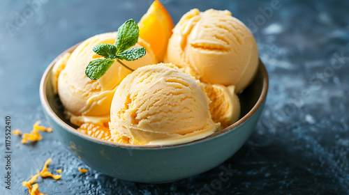 Orange ice cream in bowl on a table