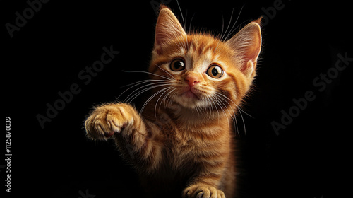 kitten, cat, felino, pet, animal, playful, cute, paw, orange, ginger, tabby, black background, studio shot, isolated, animal portrait, studio photography