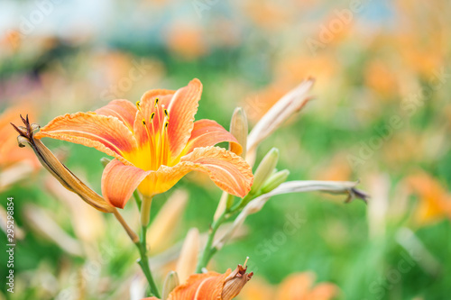 Orange lily on meadow macro