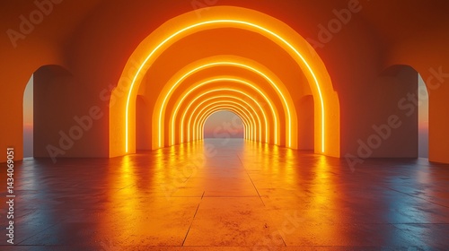 tunnel, archway, neon, orange, sunset, light, architecture, hallway, corridor, perspective, glow, bright, abstract, background, design, futuristic, modern, interior, space, illumination, pathway, entrance, way, travel, journey, future, technology, vibrant, energy, art, graphic, illustration, structure, shape, pattern, line, curve, building, room, style, scene, environment, lighting