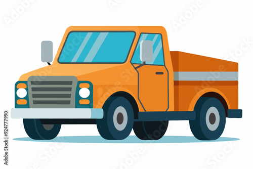 orange, truck, pickup, bed, open, vehicle, transportation, car, automotive, transport, flat, design, illustration, graphic, art, style, colours, modern, icon, symbol, isolated, white, background, front, side, view, detail, wheel, tire, door, window, mirror, bumper, headlamp, grille, tailgate, chassis, engine, cabin, cargo, load, drive, road, journey, travel, delivery, service, work