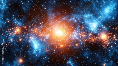Orange-Blue Cosmic Network Background (Space Sci-Fi & Tech Aesthetics)