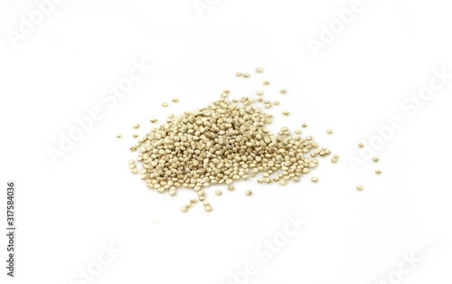 Organic Quinoa (Chenopodium quinoa) seeds isolated on white background. Macro close up. Top view. quinoa seeds isolated on white background.