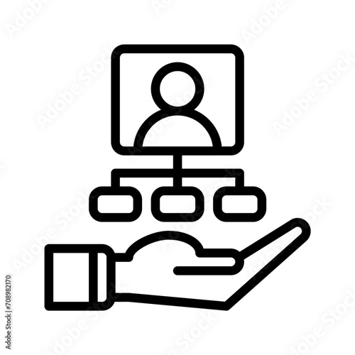 organitation icon and hand icon outline black style. Business and finance icons
