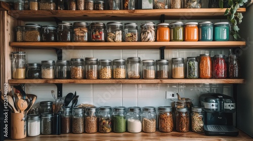 Organized pantry essentials home kitchen visual content cozy environment close-up view culinary inspiration