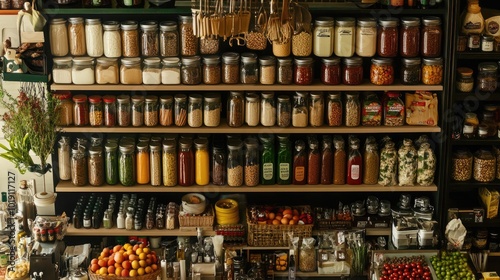 pantry, jar, organisation, produce, vegetable, fruit, shelf, spice, herb, kitchen, rustic, clean, healthy, colourful, ingredient, agriculture, environmentally friendly, local, natural, cooking, baking, sustainable, variety, grocery, home, lifestyle, vibrant, arrangement, healthy eating, market, display, tabletop, shopping, culinary, nourishment, food supply, preservation, stock, essential, wellness, epicure, home decor