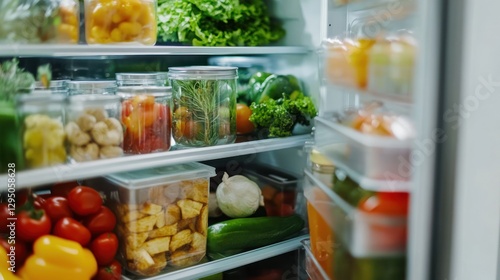Organized Refrigerator Filled with Fresh Produce and Healthy Ingredients
