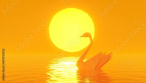 cygnet, origami, sunset, gold, sun, water, paper, bird, animal, art, design, three-dimensional, illustration, nature, peace, calm, beauty, peacefulness, warm, colours, orange, yellow, summer, aesthetic, digital, creative, minimalist, modern, geometric, landscape, nature scene, water bird, symbol, symbolism, floating, light, warmth, horizon, summer evening, still, relaxing, artistic