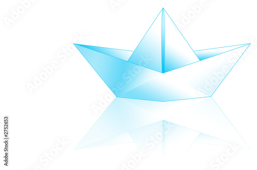 boat, recreation, sail, sailer, paper, origami, sea, travel, navigation, tour tourism, transport, blue, water, white, mirror image
