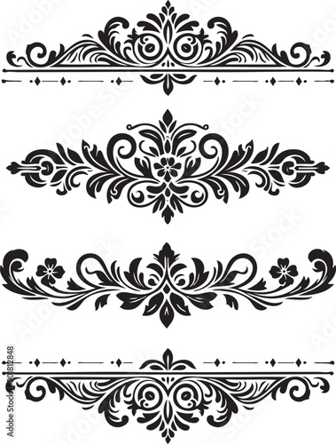 ornament, pattern, floral, vintage, design, flower, vector, decoration, illustration, element, wallpaper, border, silhouette, seamless, swirl, damask, set, classic
