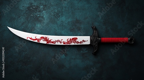 background, art, design, close, historical, life, green, fantasy, war, power, sharp, armoury, weaponry, danger, dramatic, isolated, teal, elegant, stylish, ornamental, force, still, armoring, culture, up, blade, mystery, metal, mediaeval, vintage, texture, battle, sword, combat, shot, handle, curved, black, mythology, red, dagger, studio, weapon, dangerous, dark, macro