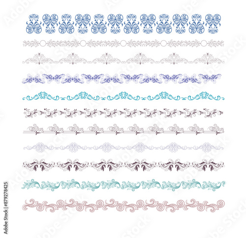 border, pattern, vector, ornament, design, set, vintage, frame, lace, decoration, floral, element, illustration, seamless, flower, art, swirl, decor, line, scroll, leaf, ornate, style, ribbon, divider