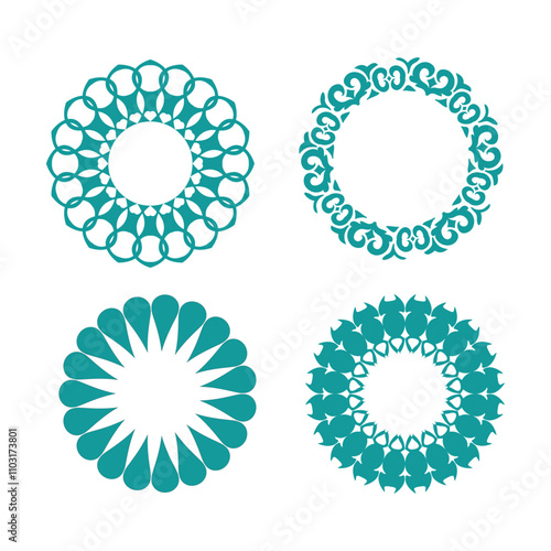 vector, pattern, design, flower, illustration, circle, decoration, art, symbol, frame, icon, element, floral, ornament, shape, set, snowflake, round, winter, snow, colours, blue, border, flower, label