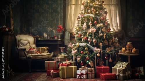 ornament, christmas, tree, vintage, illustration, bauble, tinsel, angel, topper, twinkling, light, present, traditional, classic, glasses, delicate, decorated, festive, nostalgic, retro, holiday, charme, elegant, timeless, heirloom, antique, whimsical, cosy, warm, enchanting, joyful