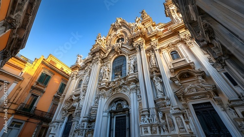 church, baroque, facades, ornate, architecture, building, stone, sculpture, detail, carving, religious, italy, genoa, sunlight, sky, blue, column, pillar, window, doorway, entrance, statue, figure, art, history, design, style, intricate, craftsmanship, exterior, monumental, majestic, elegant, impressive, weathered, ancient, classic, old, urban, city, travel, tour tourism