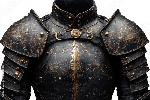 Ornate black and gold medieval armor.