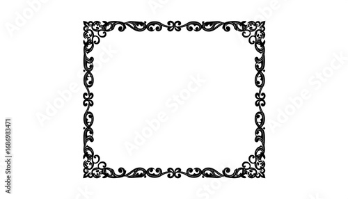 frame, black, ornate, decorative, border, design, square, vintage, elegant, classic, pattern, floral, scroll, curve, line, intricate, symmetric, empty, white, background, graphic, vector, illustration, art, design element, outline
