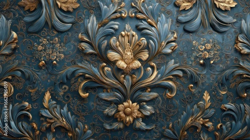 decorative, pattern, floral, design, gold, blue, texture, embossed, wall, panel, luxury, intricate, ornament, background, wallpaper, patterned, three-dimensional, relief, background, decor, interior, home, furniture, style, artistic, classic, vintage, modern, abstract, element, art, composition, isolated, digital, luxurious, ornamental, decoration, ornamentation, copy, space
