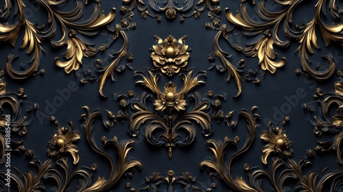 Ornate Decorative Gold Floral Patterns on Dark Background Surface