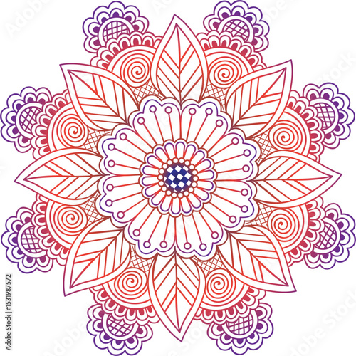mandala, floral, design, pattern, ornament, art, decoration, intricate, swirl, flower, red, purple, vibrant, decorative, illustration, graphic, element, ornate, colourful, aesthetic, symmetry, detailed, motif, circular, round, spiritual, yoga, meditation, culture, tradition, artistic, creative, beauty, elegance, blossom, flower petals, leaf, bohemian, paisley, ethnic, line art, doodle, vector, graphic design, wallpaper, textile, background, template