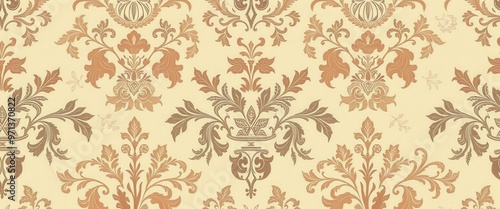 pattern, floral, ornate, design, brown, beige, leaf, swirl, motif, vintage, background, texture, wallpaper, repeat, intricate, elegant, decorative, symmetric, classic, stylised, art, graphic, illustration, abstract, style, baroque, damask, rococo, scroll, flourish, element, victorian, antique, retro, traditional