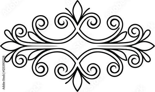 flourish, ornament, design, element, scroll, swirl, leaf, leaf, symmetric, decorative, embellishment, border, frame, vintage, antique, retro, classic, pattern, black, white, line, line, art, graphic, illustration, vector, clip art, design element, floral, foliage, curlicue, curl, spiral, twirl, elegant, stylish, artistic, aesthetic