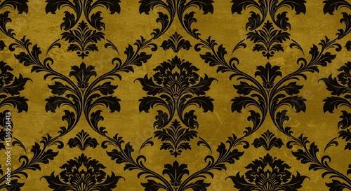 Ornate Gold and Black Damask Wallpaper