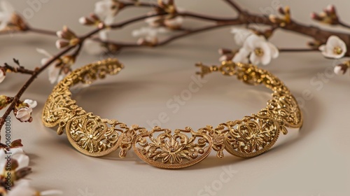 Ornate Gold Necklace with Delicate Floral Detail