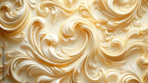 Ornate golden baroque pattern flowing curves and swirls isolated on a blank background