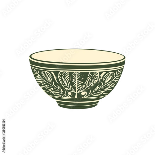 bowl, pottery, earthenware, floral pattern, kitchen utensile, tableware, studio shot, design element, illustration, vector