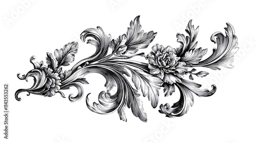 ornate, leaf, floral, flourish, scroll, decorative, pattern, design, drawing, artwork