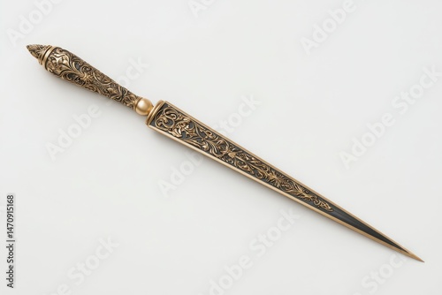ornamental, intricate, elegant, decorative, vintage, luxury, craftsmanship, blade, handle, metal, floral, pattern, sharp, sophisticated, classic, antique, art, design, detail, tool, office supply, writing, stationery