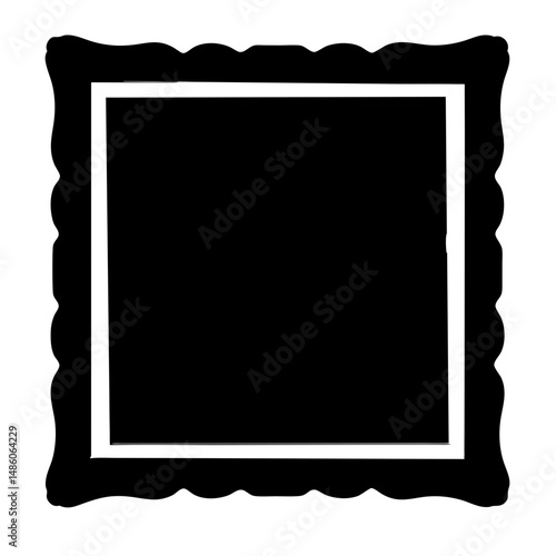 Ornate picture frame silhouette with decorative wavy border and inner white frame