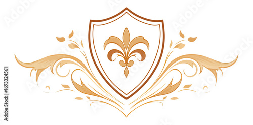 shield, emblem, design, ornament, vintage, ornamental, foliage, pattern, graphic, beige, brown, gold, decorative, logotype, luxury, heritage, history, illustration, vector, isolated, graphic design, embellishment, art deco, floral, design element, image, background, decoration, symbol, artistic, art