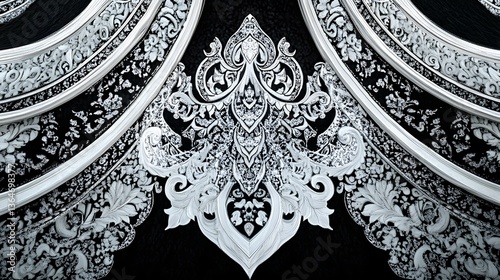 ornate, silver, design, intricate, symmetric, pattern, black, background, elegant, branding, artistic, project, decorative, luxury, style, detail, modern, classic, texture, abstract, beauty, sophistication, refinement, creativity, visual, art, elegance, contrast, shiny, motif, embellishment, chic, craftsmanship, finesse, graphic, unique, aesthetic, composition, allure, harmony