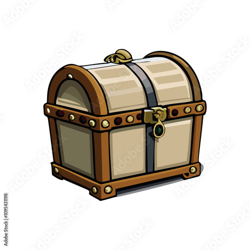 Ornate Treasure Chest - Cartoon Illustration of a Jewel-Decorated Vintage Box