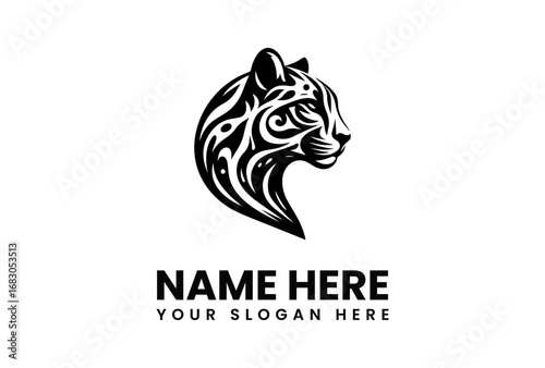 ocelot, cat, felino, wildcat, animal, head, profile, tribal, tattoo, design, graphic, logotype, ornate, pattern, black, white, monochrome, abstract, art, illustration, style, vector, image, symbol, emblem, icon, branding, identity, majestic, fierce, elegant, powerful, nature, wildlife, predator, jungle, forest, wild, spirit, mystical, ancient, culture, heritage, tradition, decorative, swirl, line, shape, sophisticated