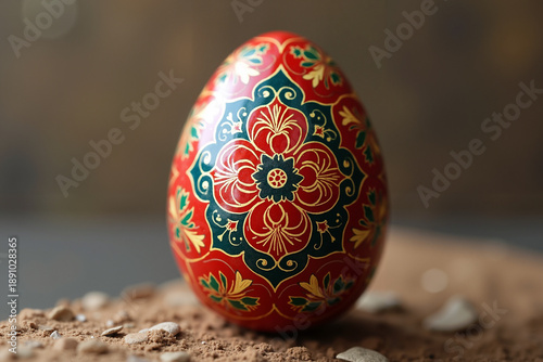 egg, easter, decorated, floral, colours, red, green, spring, design, closeup, holiday, tradition, art, celebration, craft, pattern, festive, hand-made, ornament, decoration, symbol, culture, chocolate, ground, rustic, artistic, ornamentation, nature, bright, vibrant, seasonal, food, gift, beautiful, traditional, creativity, springtime, joy, religious, custom, unique