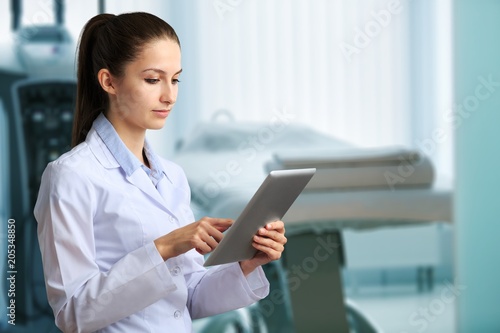 orthopedics, doctor, knee, adult, appointment, bone, broken, care, check, clinic, computer, disease, equipment, exam, examining, female, hand, health, health care, holding, hospital, injury, cyberspace, joint, laptop, looking, medic, medicals, nurse, office, pain