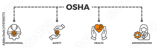 OSHA banner web icon illustration concept for occupational safety and health administration with an icon of worker, protection, healthcare, and procedure