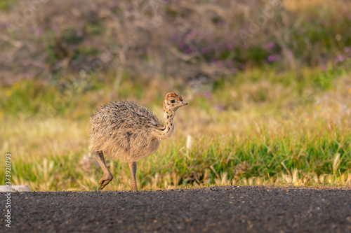 Ostrich baby walk for living on field at seaside : Cape of good hope , South africa