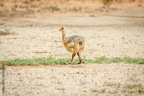 Ostrich chick walking in the sand.