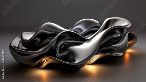 abstract, metallic, shape, illuminated, gold, light, dark, background, futuristic, modern, design, art, digital artwork, creativity, innovation, technology, luxury, elegance, style, smooth, curve, flowing, dynamic, energy, motion, shine, glow, molten