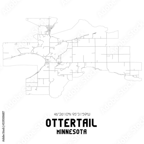 Ottertail Minnesota. US street map with black and white lines.